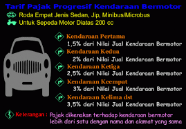 pemungutan tarif progresif Pajak Kendaraan Bormotor.